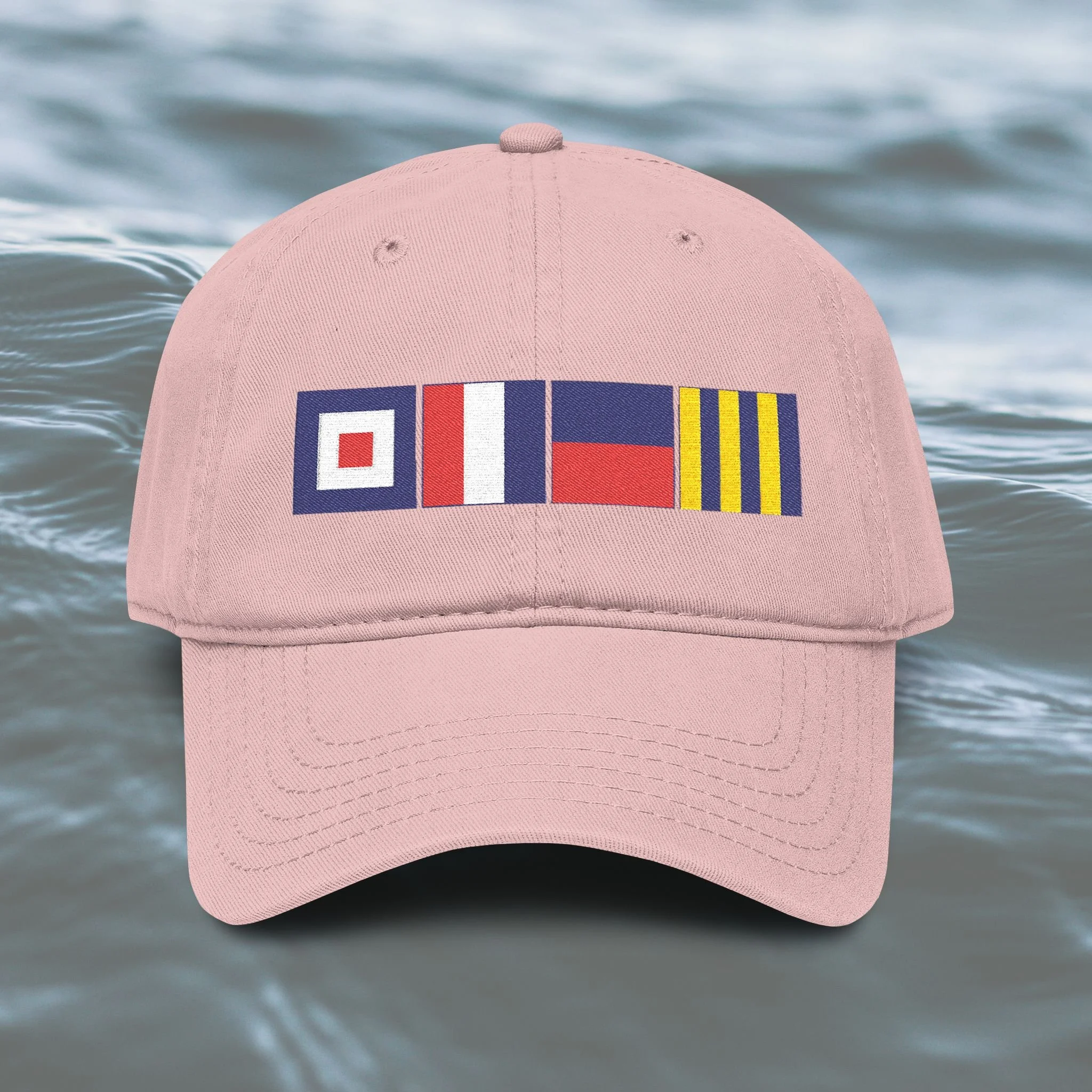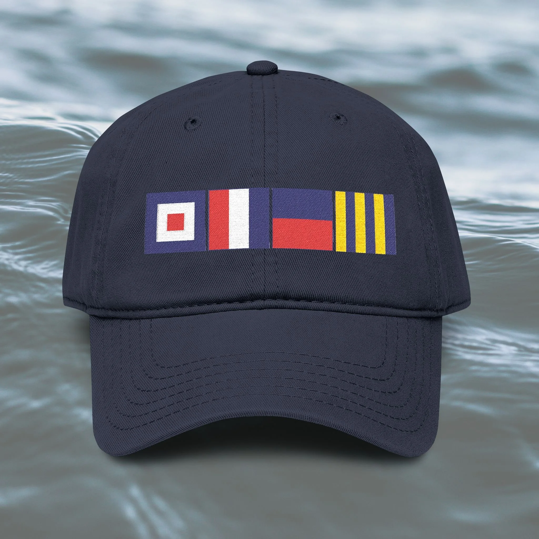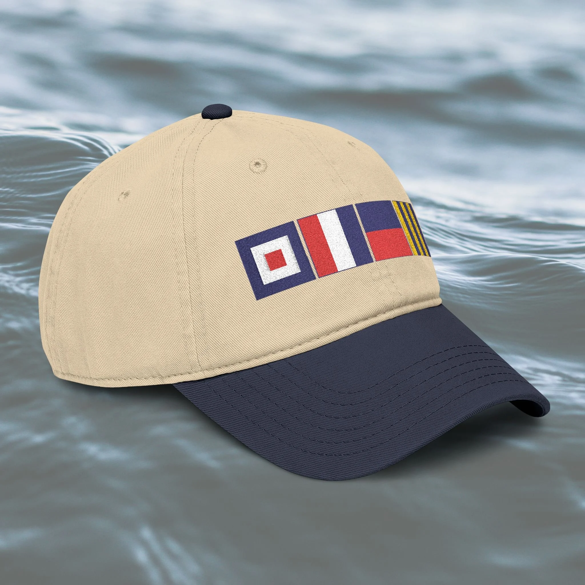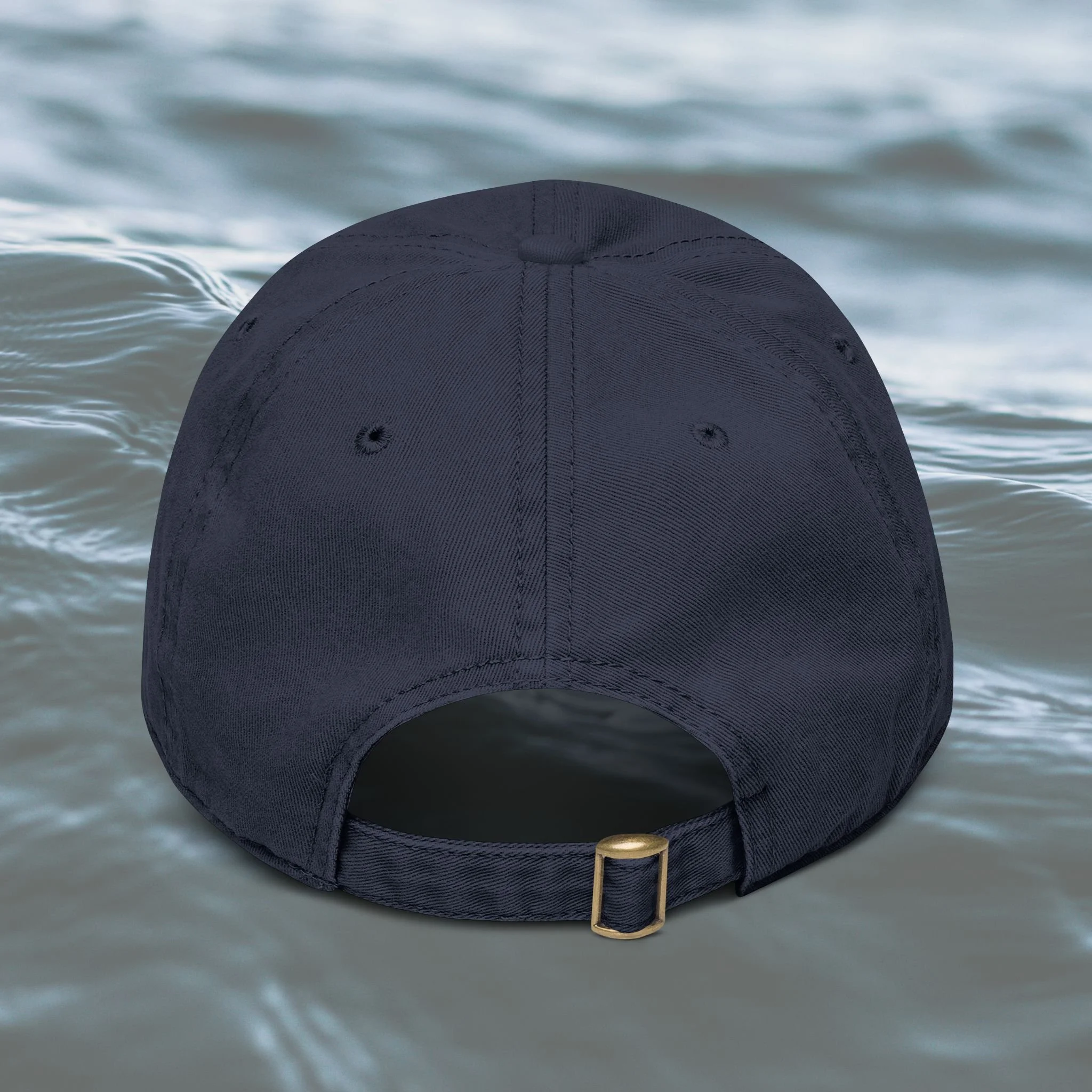 This washed baseball cap brings a quietly nautical vibe to everyday wear. Soft, broken-in 100% cotton forms a low-profile, unstructured crown that settles naturally on your head. On the front, a stitched row of our call sign. An antique-brass metal snap buckle at the back gives a vintage touch and easy adjustability. Wear it on breezy mornings by the harbor, late-afternoon walks along the pier, or while fixing lines on the boat.