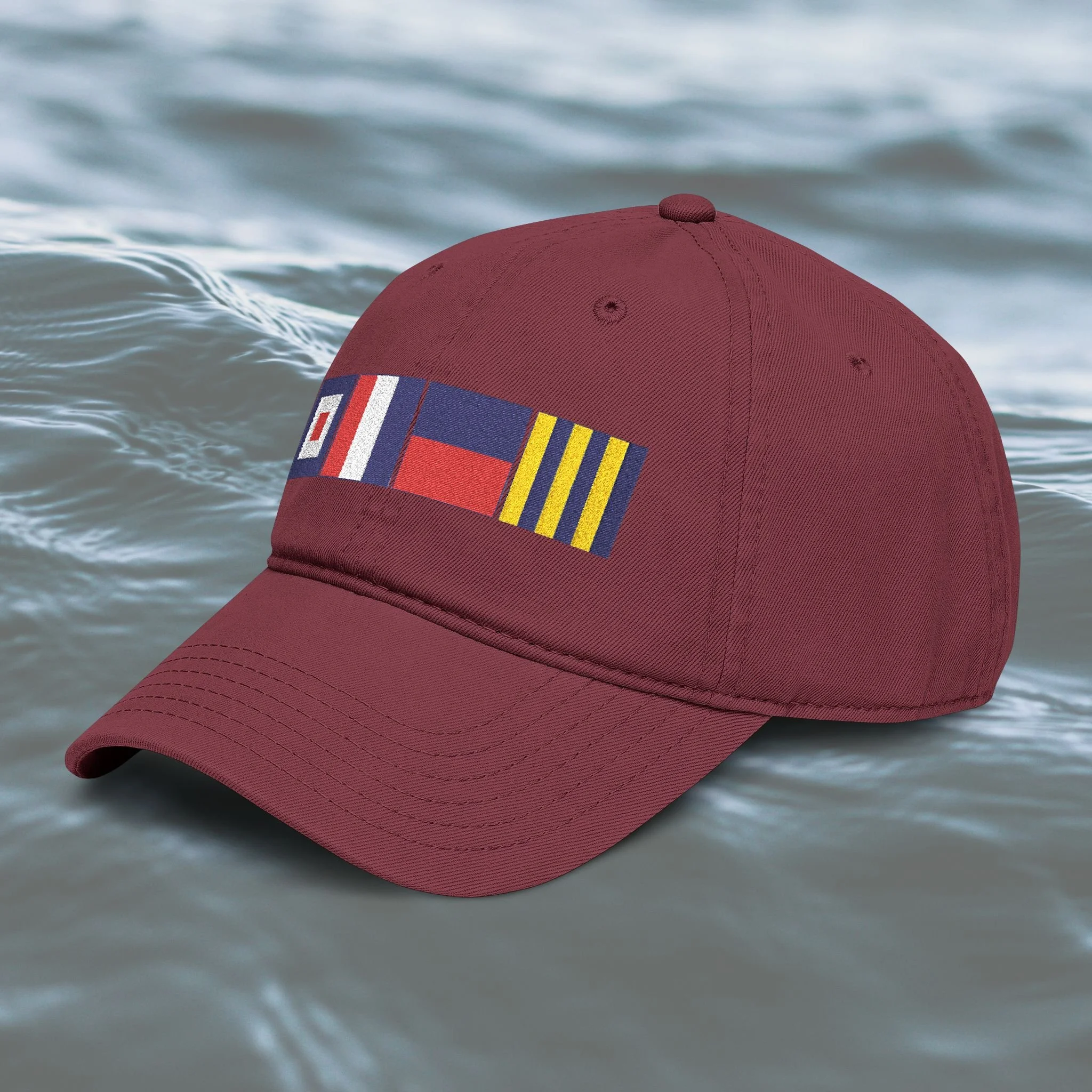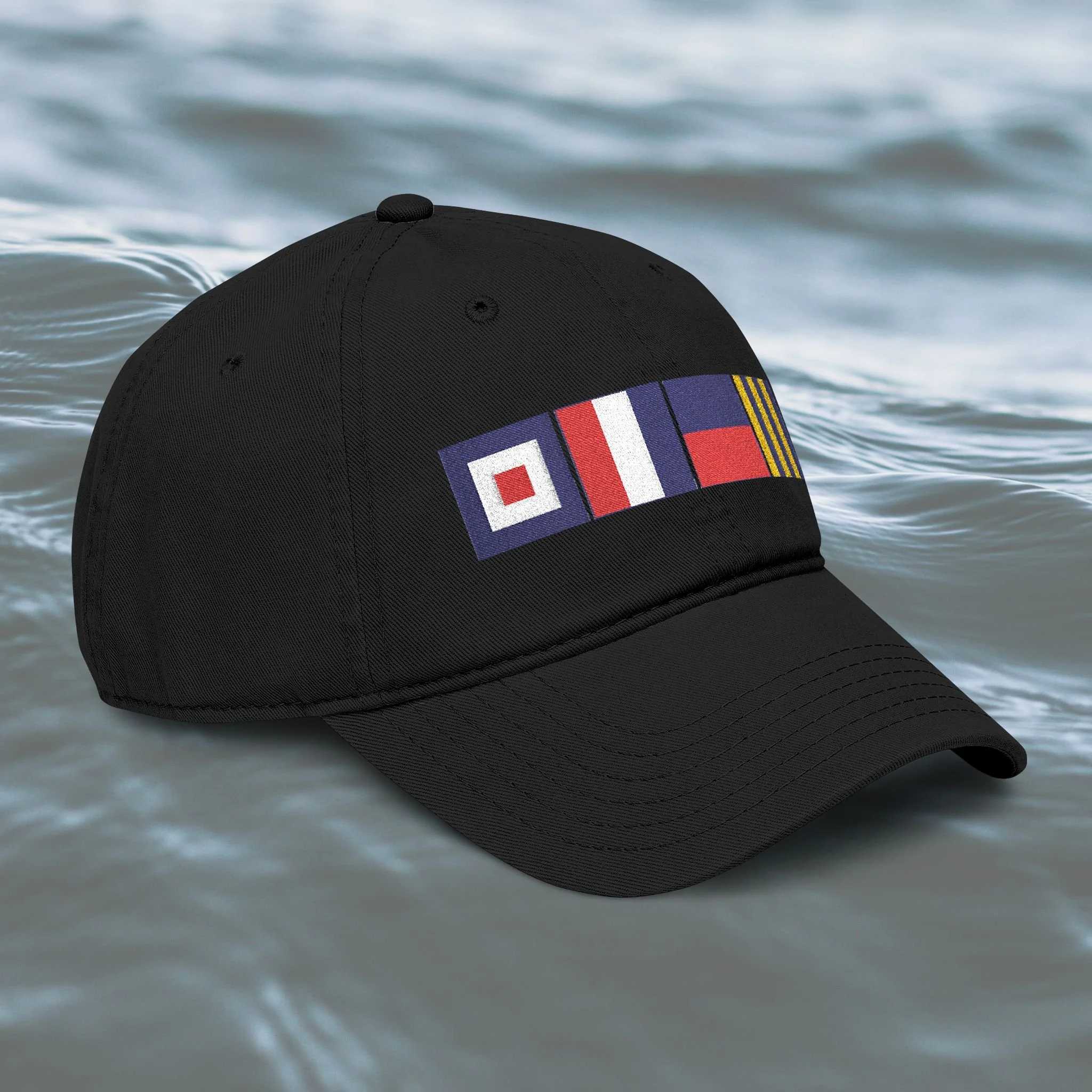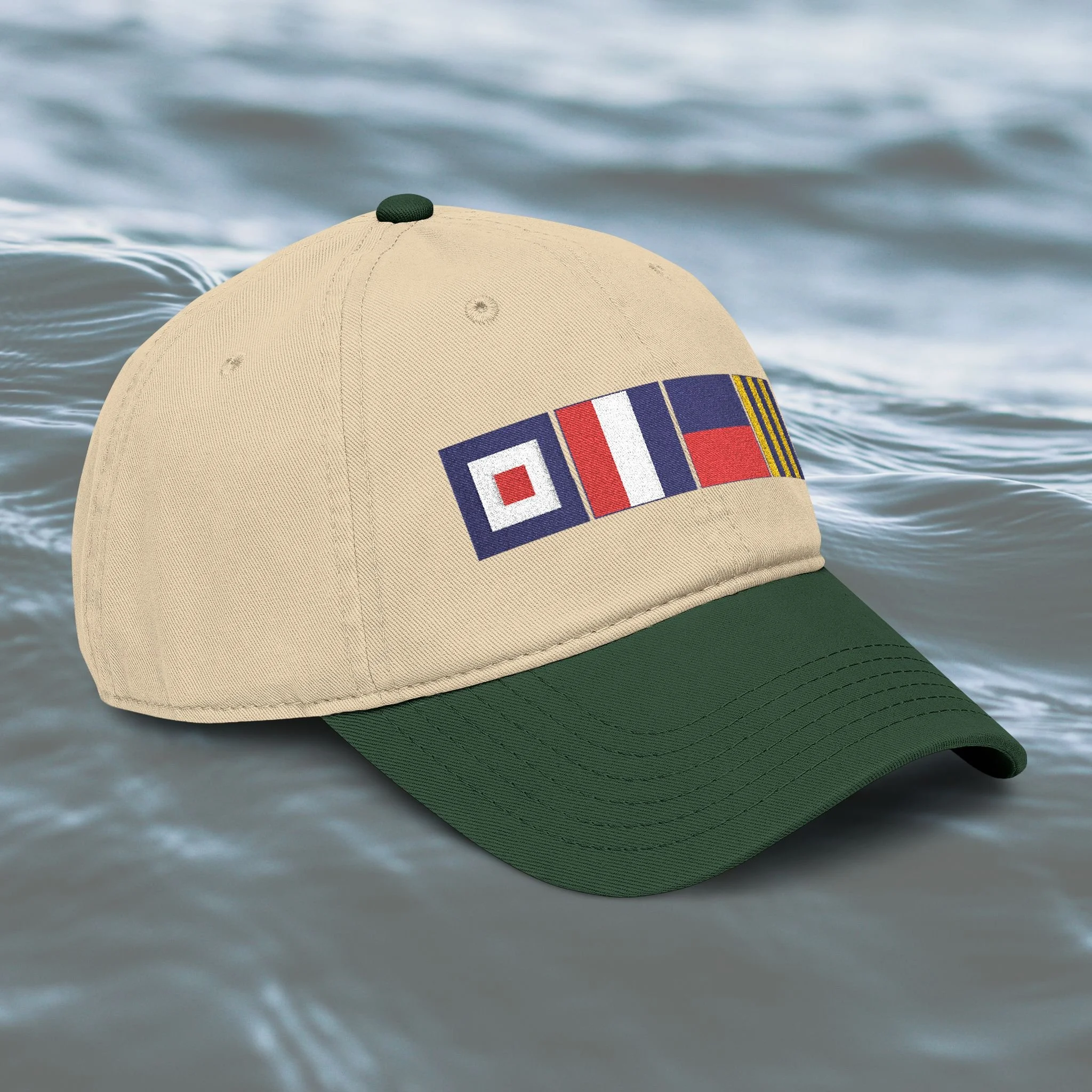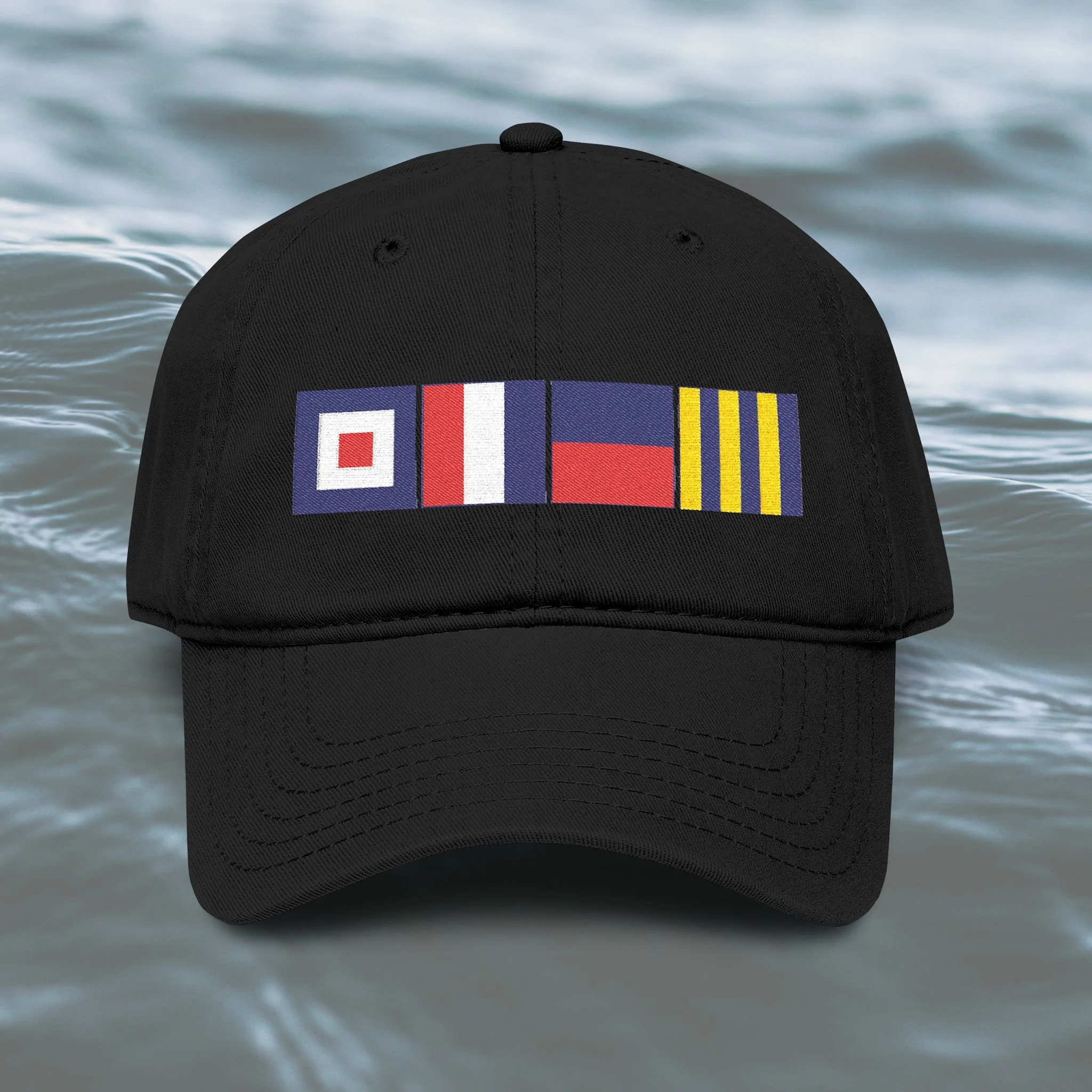 This washed baseball cap brings a quietly nautical vibe to everyday wear. Soft, broken-in 100% cotton forms a low-profile, unstructured crown that settles naturally on your head. On the front, a stitched row of our call sign. An antique-brass metal snap buckle at the back gives a vintage touch and easy adjustability. Wear it on breezy mornings by the harbor, late-afternoon walks along the pier, or while fixing lines on the boat.